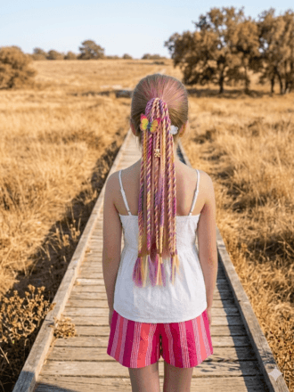Spalvotos plaukų kasytės leidžia eksperimentuoti su šukuosenomis ir kurti įvairius stilius – nuo paprastų kasų iki sudėtingesnių pynimų.