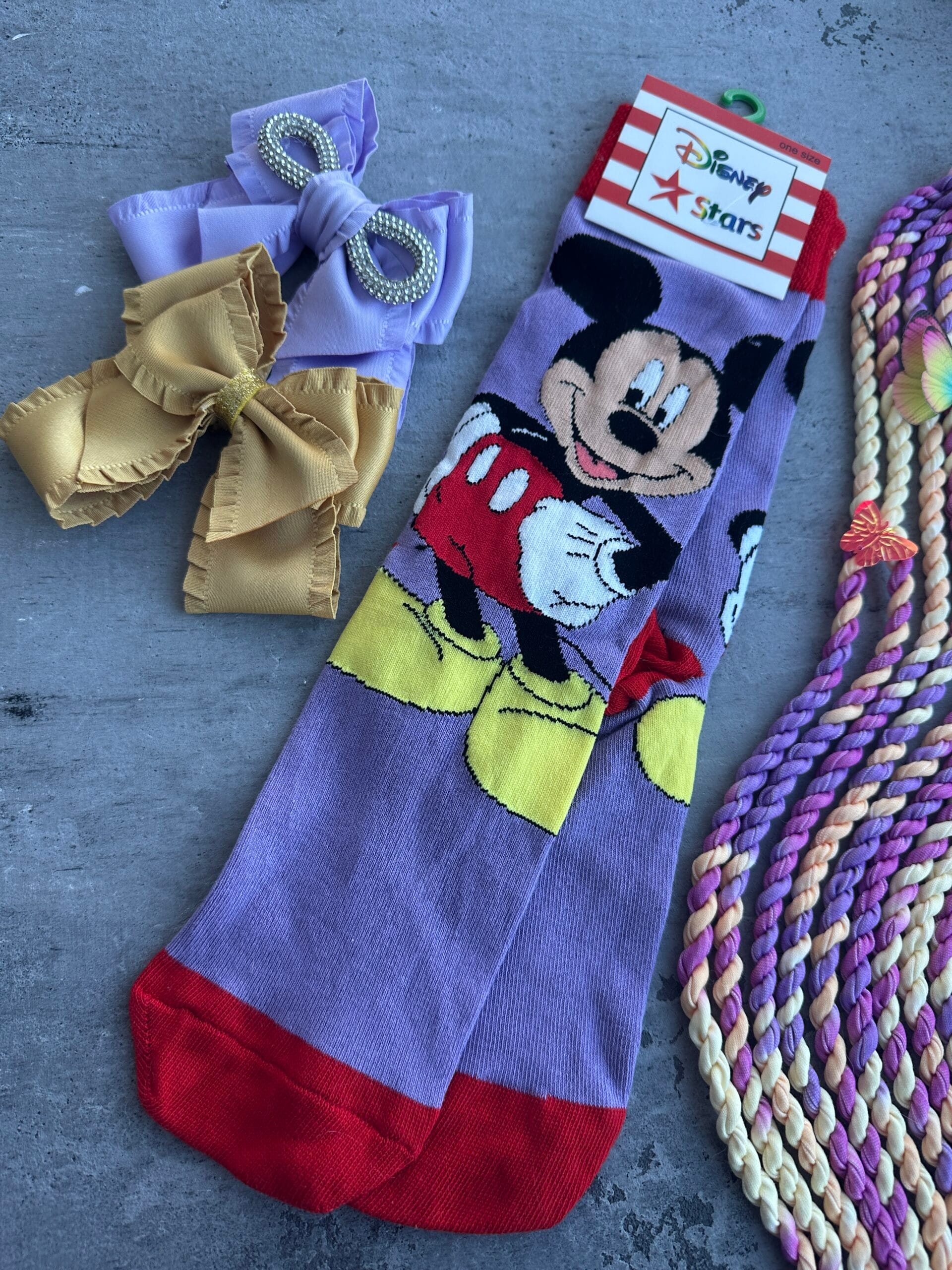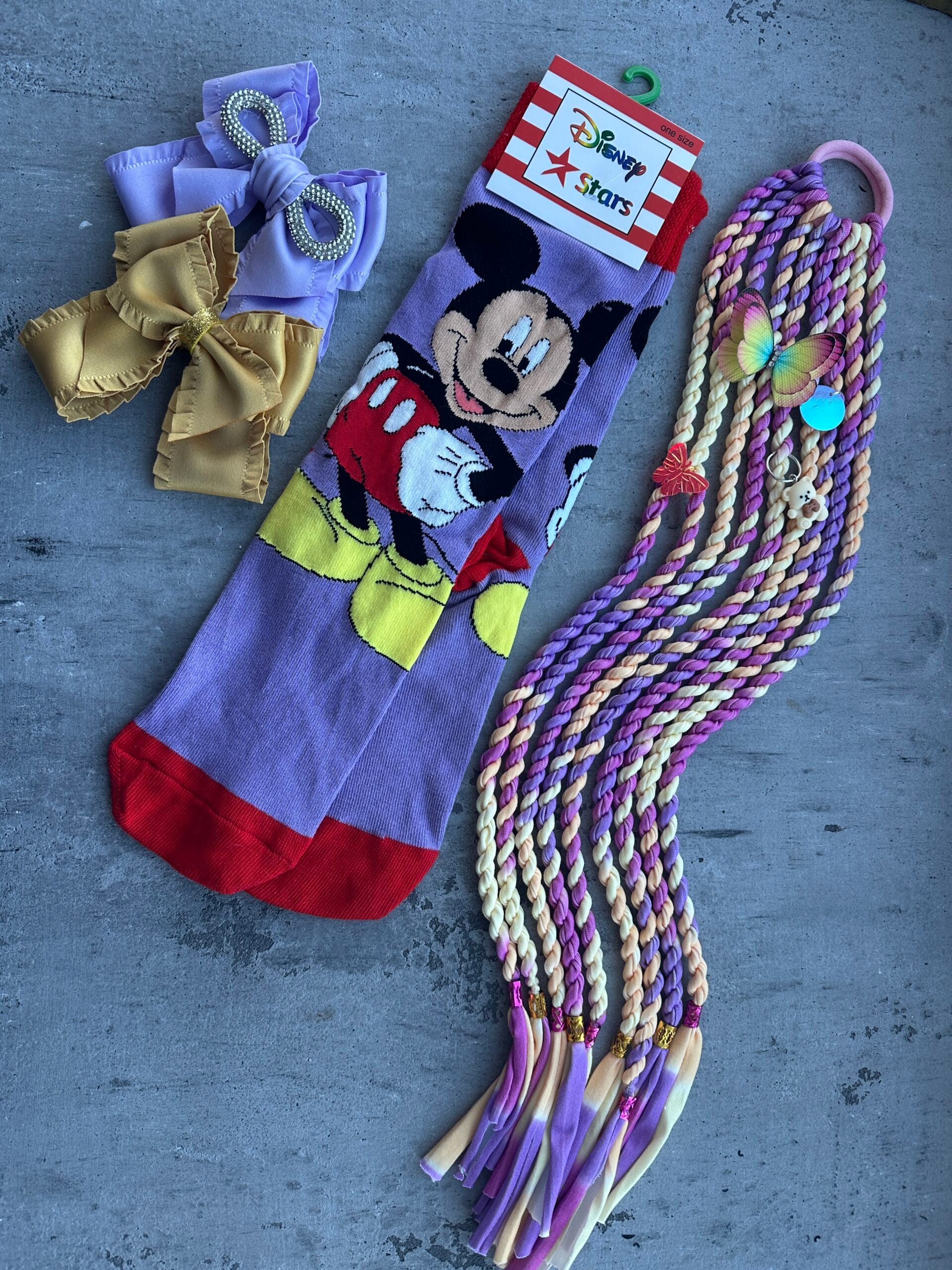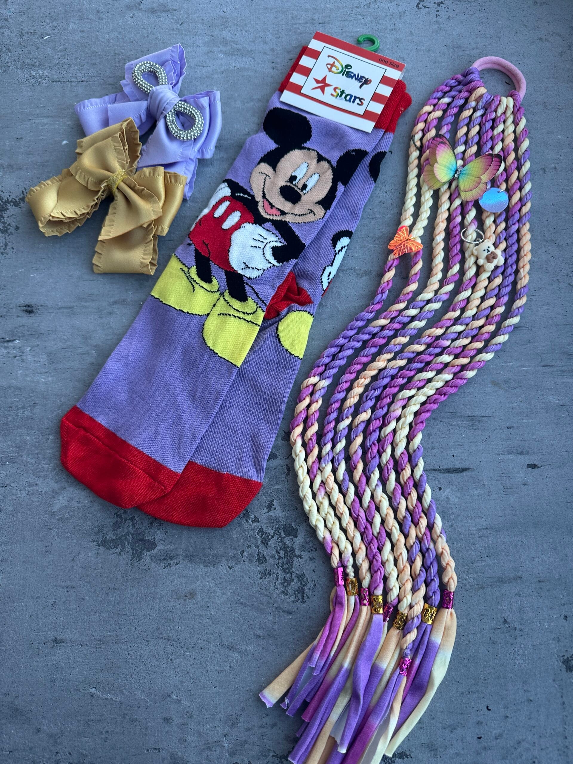 Plaukų aksesuarų rinkynis ir ilgos kojinės