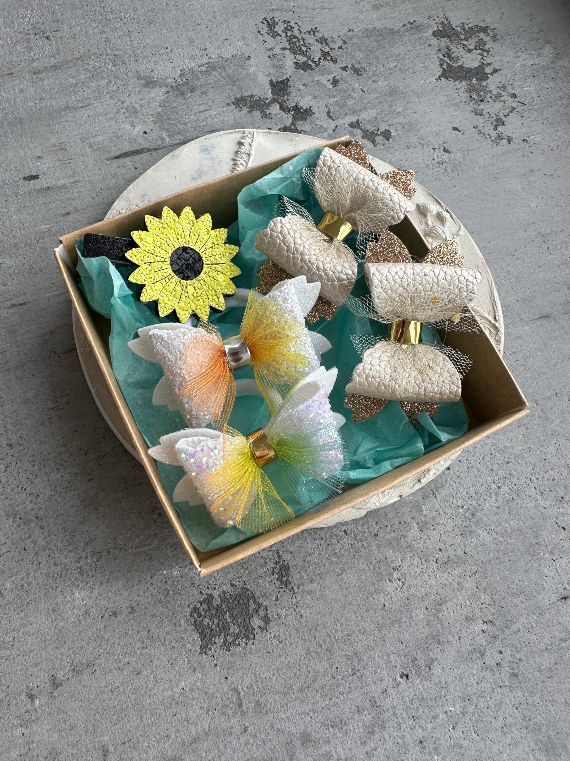 Plaukų aksesuarų rinkinys yra puiki dovana mergaitėms įvairiomis progomis – gimtadieniams, šventėms ar kaip miela staigmena. Gražiai suderinti aksesuarai ne tik pradžiugins, bet ir bus naudingi kasdien.