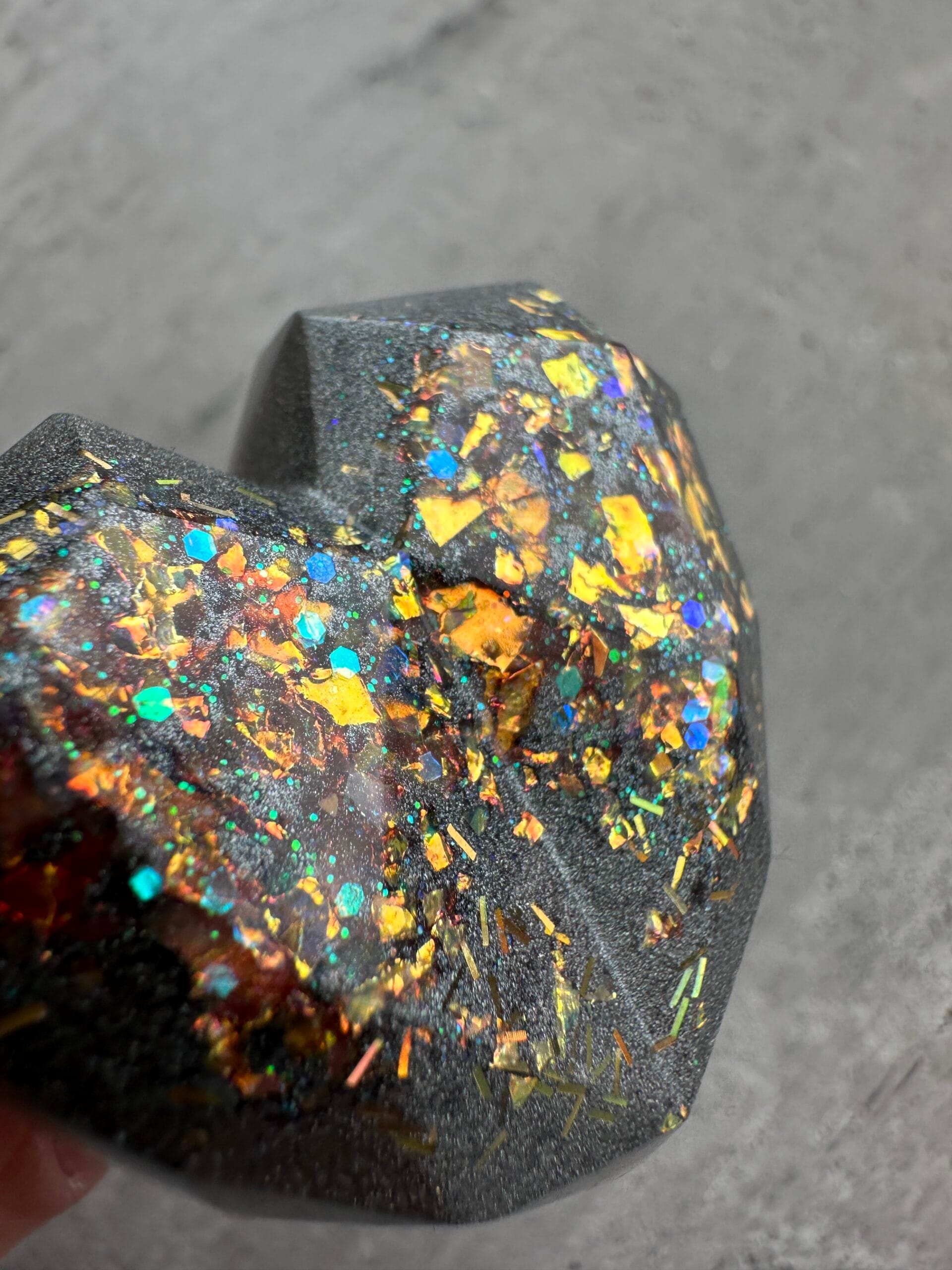 Plaukų gumytė iš epoksidinės dervos širdis – tai unikalus, rankų darbo plaukų aksesuaras, išsiskiriantis savo tvirtumu, blizgesiu ir originaliu dizainu. Epoksidinė derva leidžia sukurti skaidrius, spalvotus ar dekoruotus elementus, kurie suteikia šukuosenai modernumo ir išskirtinumo.