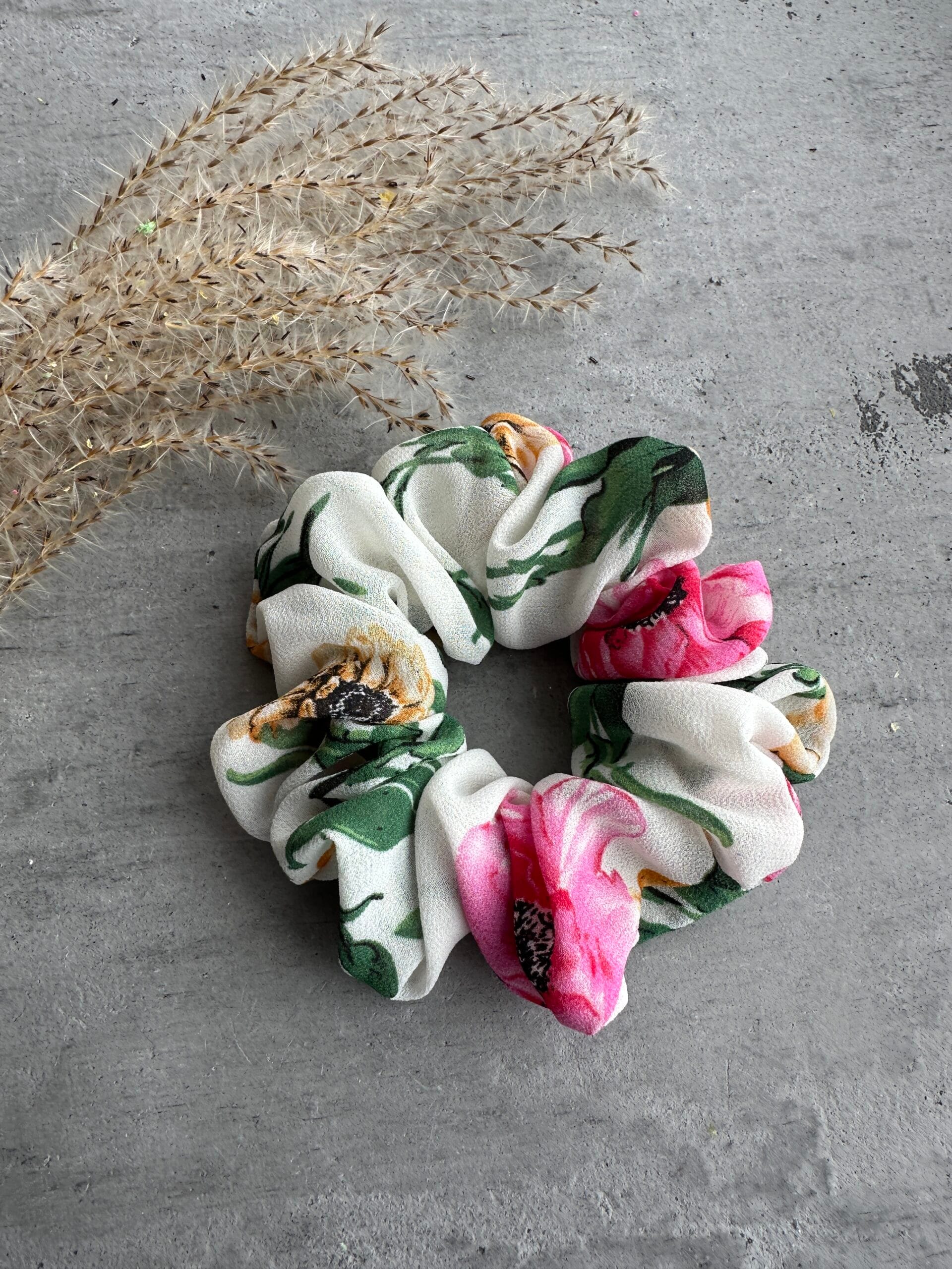 Plaukų gumytė iš gėlėto viskozės flowers – lengvumas ir moteriškumas
