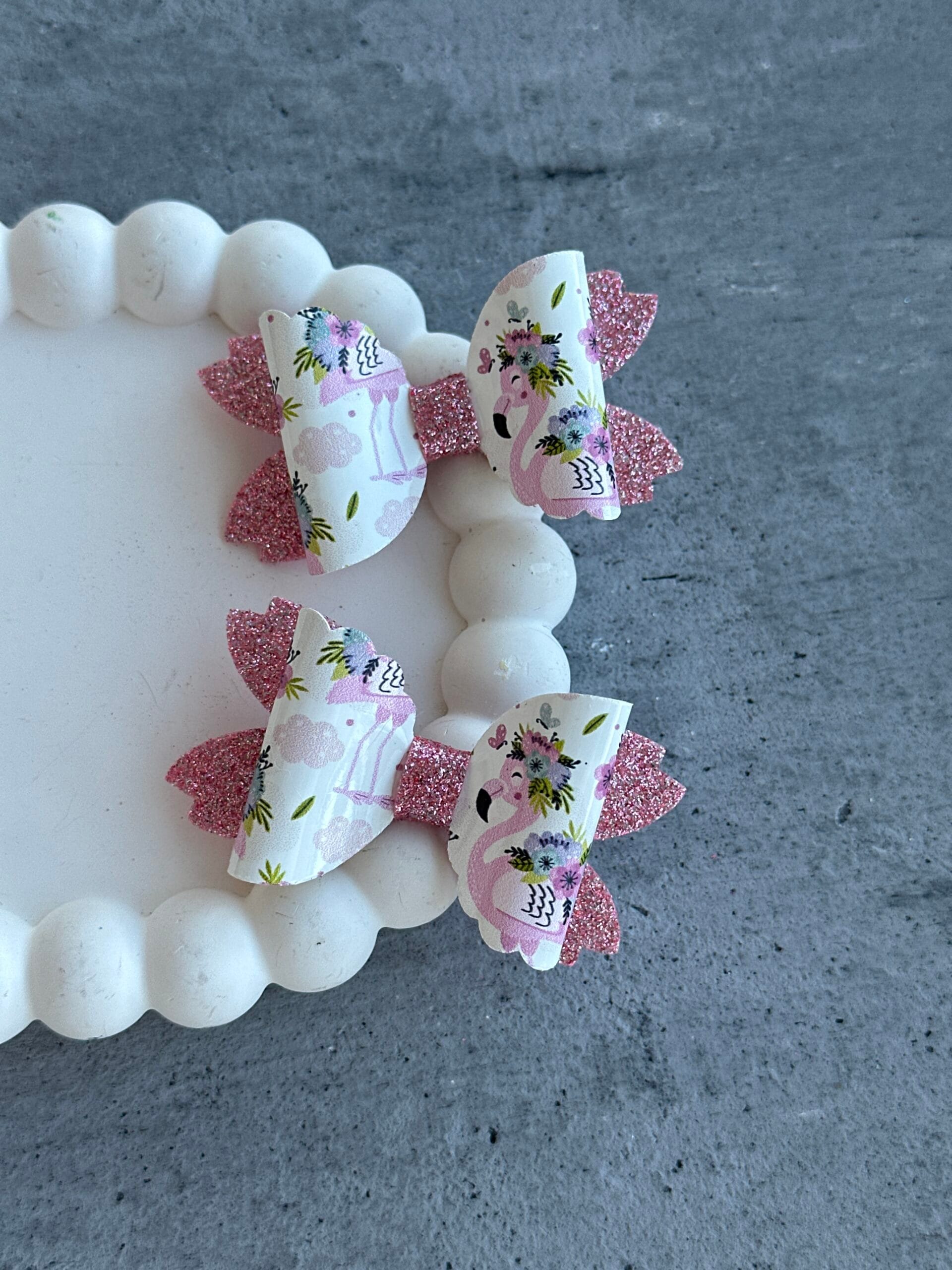 Plaukų segtukai mergaitėms flamingo – tai subtilūs ir stilingi rankų darbo plaukų aksesuarai, skirti mergaitėms, kurios mėgsta švelnumą ir eleganciją. Kiekvienas segtukas pagamintas rankomis, todėl kiekvienas yra unikalus. Balti drugelio motyvai suteikia šukuosenai lengvumo, gracijos ir vaikiško džiaugsmo.