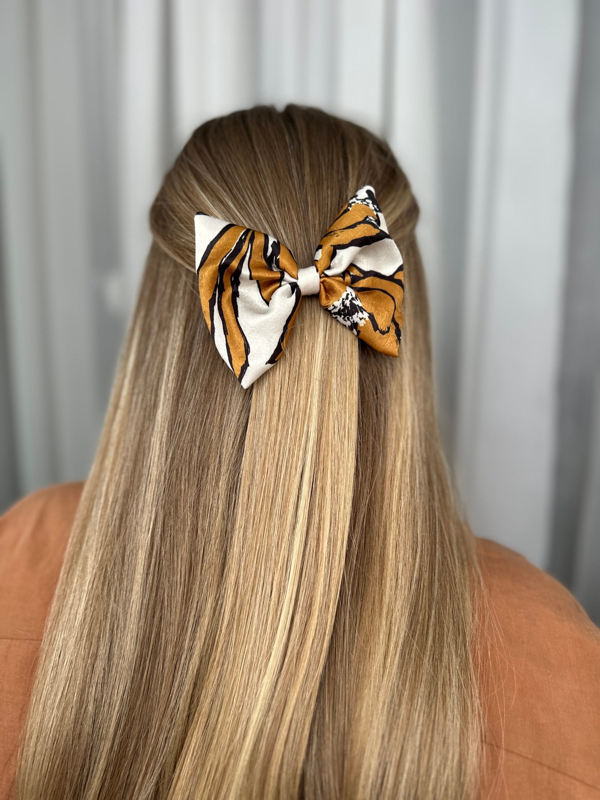 Šis plaukų segtukas iš satino puikiai derinamas prie įvairių šukuosenų: nuo pusiau surinktų plaukų iki kaselių ar kuodelių. Jis padeda sukurti tvarkingą, bet žaismingą įvaizdį, o subtilus satino blizgesys suteikia elegancijos net paprastai šukuosenai.